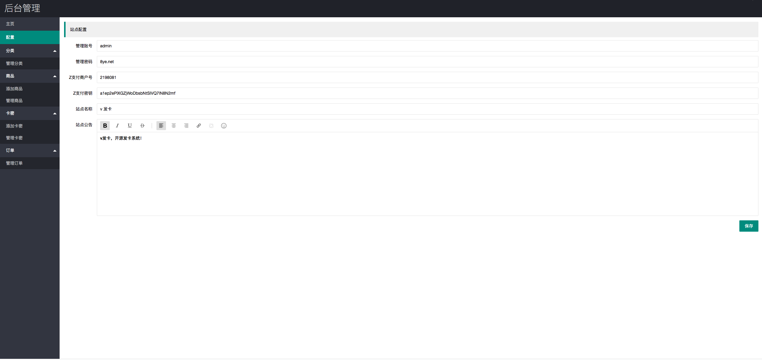 6、至此网站搭建完毕,请访问后自行修改配置信息!后台登录地址:http://域名/login.html ,默认后台账号和密码为admin 8ye.net