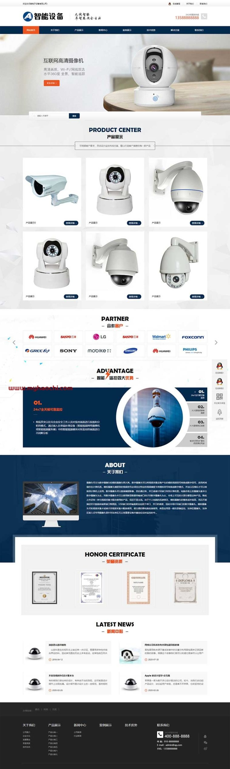 PbootCMS内核开发的网站模板,该模板适用于智能摄像头网站、安全防盗设备、电子产品网站模板等企业,当然其他行业也可以做,只需要把文字图片换成其他行业的即可;