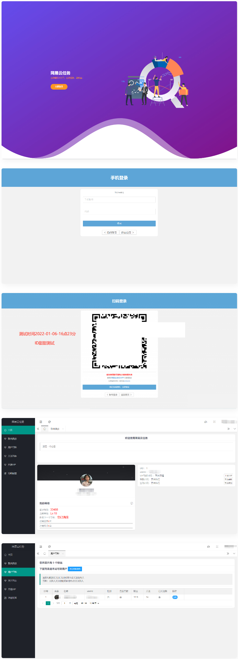 支持充值 会员使用 每日签到打卡任务 刷歌曲播放 刷粉丝等