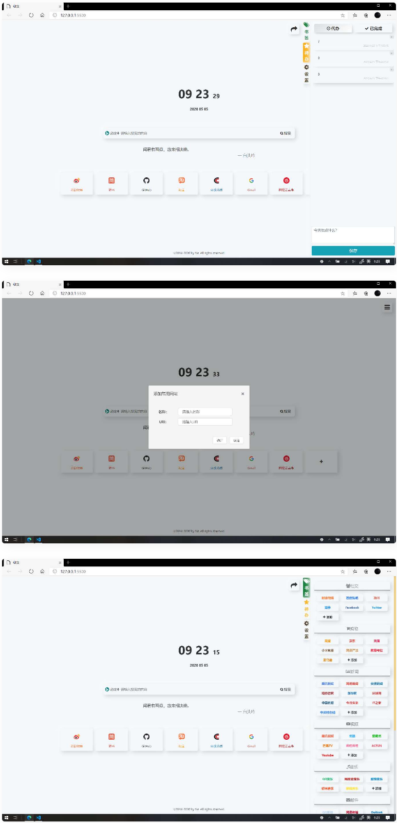 简洁的浏览器主页,采用原生js编写,可选择不同的搜索引擎,展示网址收藏,查看天气,本地设置,无聊时玩玩小游戏以及小工具合集…