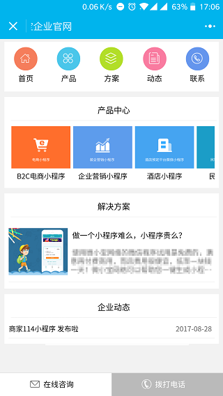 小程序模板简介: 该小程序模板是一款科技企业图文宣传推广的企业型官网小程序模板,是一款非常适合用作企业团队宣传信息推广业务的小程序模板,可自行进行对应的信息修改重新设计等等!小程序模板截图:
