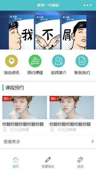 小程序模板简介: 该小程序模板是一款可以快速进行课程预约的小程序模板,通过该程序用户可以轻松在对应的时间进行学习课程的预约学习等等!是一款非常方便实用的教育预约微信小程序模板!小程序模板截图: