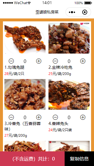 小程序模板简介: 该小程序模板是一款私房菜外卖点餐的小程序模板,该模板使用方便,是一款非常方便实用的外卖点餐行业的微信小程序模板。方便用户进行相应的点餐预定等业务!小程序模板截图: