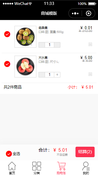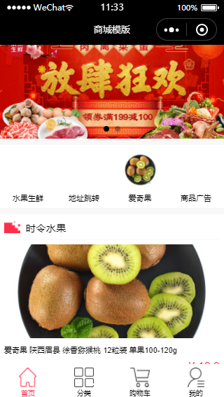 小程序模板简介: 该小程序模板是一款精简排版的水果在线商城微信小程序模板,非常适合各类水果商城水果店推广使用,用户可以通过该程序快速的找到自己想要的水果商品以及相应的优惠活动等等。还可以自行进行相关的结账!小程序模板截图: