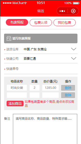 小程序模板简介: 该小程序模板是一款可以轻松认领填写转运的在线微信小程序,帮助商户快速进行相应的物流交易等等。是一款非常使用的物流行业微信小程序!小程序模板截图: