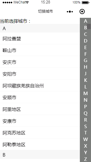 小程序模板简介: 该小程序模板是一款根据城市首字母进行城市分类切换的小程序,你可以使用该程序快速进行程序的查询与对应的城市切换,可嵌套进各种程序下拉框等等!小程序模板截图: