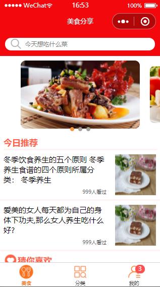 小程序模板简介: 小程序模板是一款简约红边餐饮养生类的微信小程序,是一款创意简洁的前端小程序。可通过选择不同的菜品获得相应的食物的信息与做法!小程序模板截图: