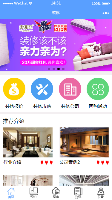 小程序模板简介: 该小程序模板是一款装修预约的小程序,方便用户进行相关的房屋装修预约承包等等,你可以通过该程序看到各种装修的成品效果图,是一款非常实用的装修预约小程序!小程序模板截图: