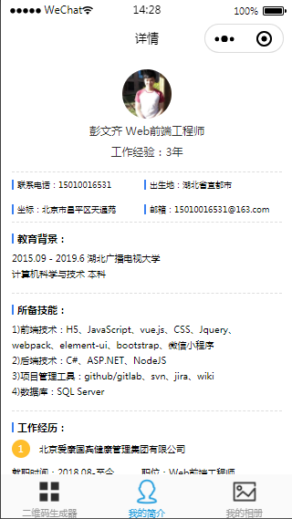 个人简历模板素材微信小程序模板是一款生成个人简历的小程序,大家可以使用他生成个人简历、求职简历、工作简历等等。