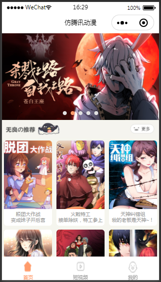 仿腾讯动漫视频源码小程序模板是一款类似腾讯APP动漫视频板块的小程序,供爱好二次元动漫爱好者使用。模板使用范围广。类似的视频播放小程序均可使用,替换图片视频内容即可。