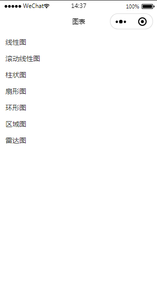 统计图表制作绘制微信小程序模板可以在线绘制统计图表,模板内包含线形图、滚动线形图、柱状图、扇形图、环形图、区域图、雷达图,在线帮助绘制表图。