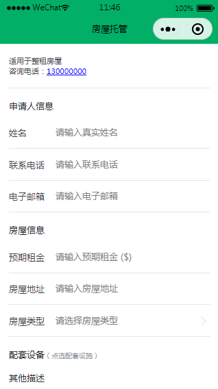 房屋出租房屋托管微信小程序模板是一套发布房源的小程序,用户发布房源整租信息,适用于租房类小程序。
