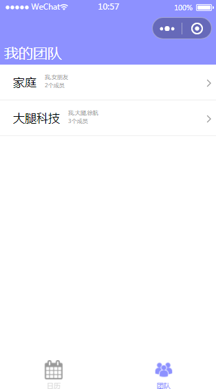 日历小程序源码微信家庭共享日历小程序模板有日历和团队两个页面,属于和家人或团队朋友共享的日历。