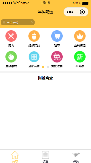 美食外卖配送微信小程序模板属于外卖配送类小程序,小程序中含有首页。订单页、我的页面。