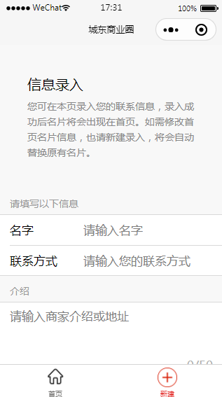 微信商圈信息录入小程序模板属于信息录入类,在线录入商圈信息或者商家信息,小程序模板内含源码,包含非常详细完整的框架架构结构,便于开发借鉴学习使用。
