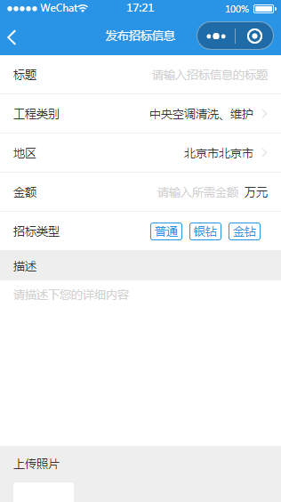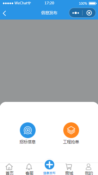 企业类小程序信息发布页面模板属于企业类小程序,小程序含有首页、客服、信息发布、商城以及我的5个页面,模板整体风格为蓝色,内含源码,经过微信开发者工具实测后,可以使用。