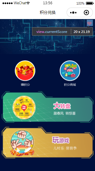 积分兑换微信小程序模板可以在线兑换积分,通过大转盘选取积分兑换的产品,用积分玩游戏,获得儿时的乐趣,还可以做任务赚取积分。