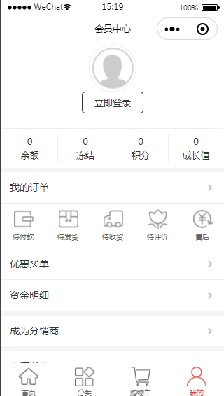 小程序会员中心模板用户登录后可以查看不同内容,模板有查看订单、优惠买单、资金明细等功能,是一款值得选择的商城小程序。