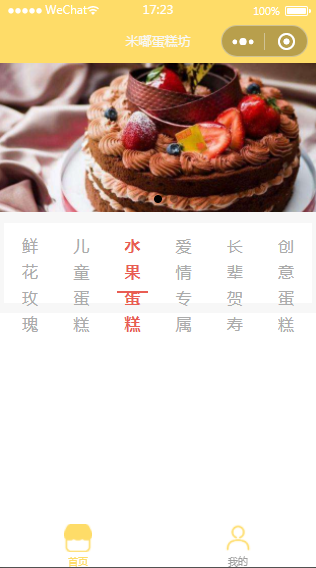 微信蛋糕店小程序模板属于蛋糕商城小程序,小程序模板简单,有首页和我的个人中心两个页面,首页展示了不同种类的商品,用户可以在线订购。