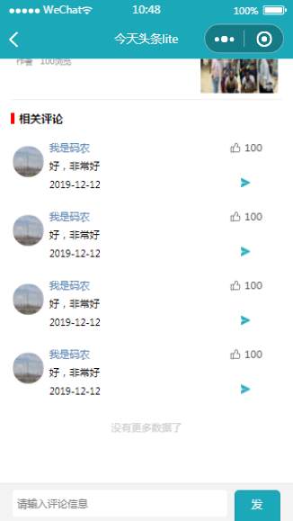 新闻资讯小程序文章内容页模板样式简单,突出主题,文章主体下方还设置评论区,和用户互动。小程序源码中含有完整的框架架构便于用户学习,用户下载后可以进行图片或文字内容的更换。