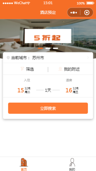 酒店预订小程序源码及模板整体风格简约,有首页和我的两个页面,小程序内含模板源码,经过微信开发者工具实测后,可以使用。小程序源码中含有完整的框架架构便于用户学习,用户下载后可以进行图片或文字内容的更换。