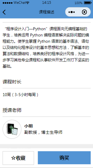 岗位招聘小程序课程详情页模板介绍了详细的课程内容以及授课老师等信息。