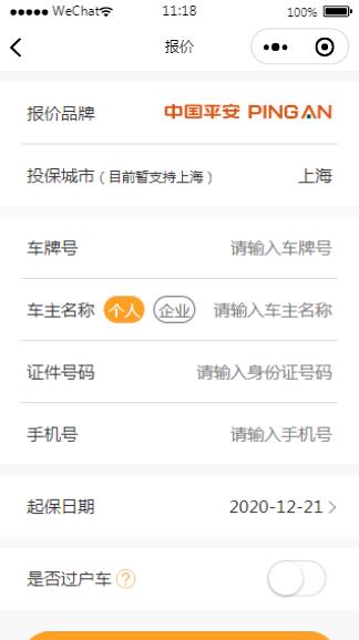中国平安车险报价小程序模板含源码,经过微信开发者工具实测之后可以使用。