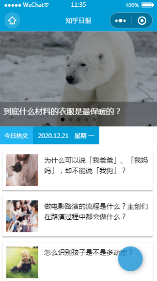 知乎日报小程序蓝色模板整体风格为蓝色,小程序属于图文分享阅读类小程序,小程序源码中含有完整的框架架构便于用户学习,用户下载后可以进行图片或文字内容的更换。小程序模板内含源码,经过微信开发者工具实测之后可以使用。