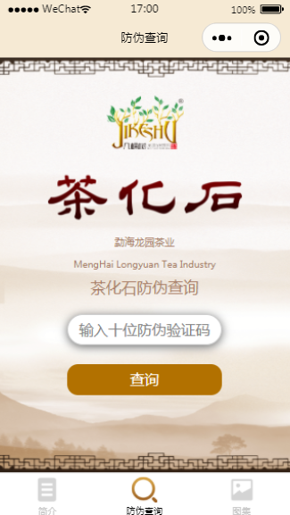 茶叶真假防伪查询小程序模板输入防伪验证码,验证茶叶的真假。