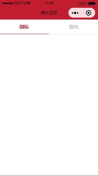 虎扑足球小程序红色模板可以查看国际新闻和国内新闻两个页面。