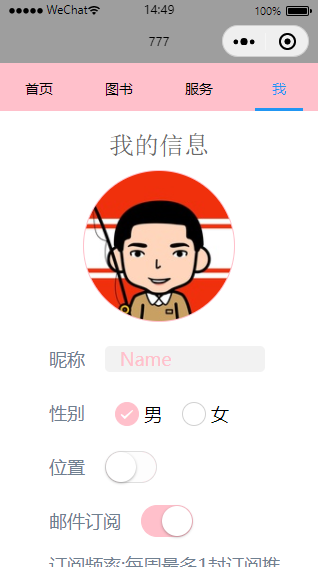 微信小程序我的个人信息页面模板,用户可以上传信息,小程序源码中含有完整的框架架构便于用户学习,用户下载后可以进行图片或文字内容的更换。