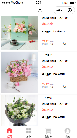 鲜花商城小程序模板商品列表页展示了鲜花商品的价格名称等信息,小程序模板源码有完整的框架架构,便于大家学习,用户下载之后,使用微信开发者工具即可打开。