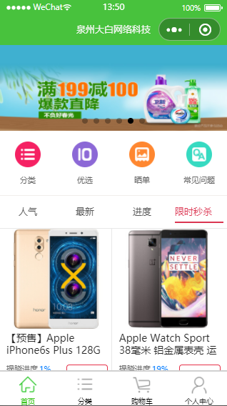 数码3C商城小程序源码是一款数码3C商城,小程序模板有首页、分类页、购物车以及个人中心页面。