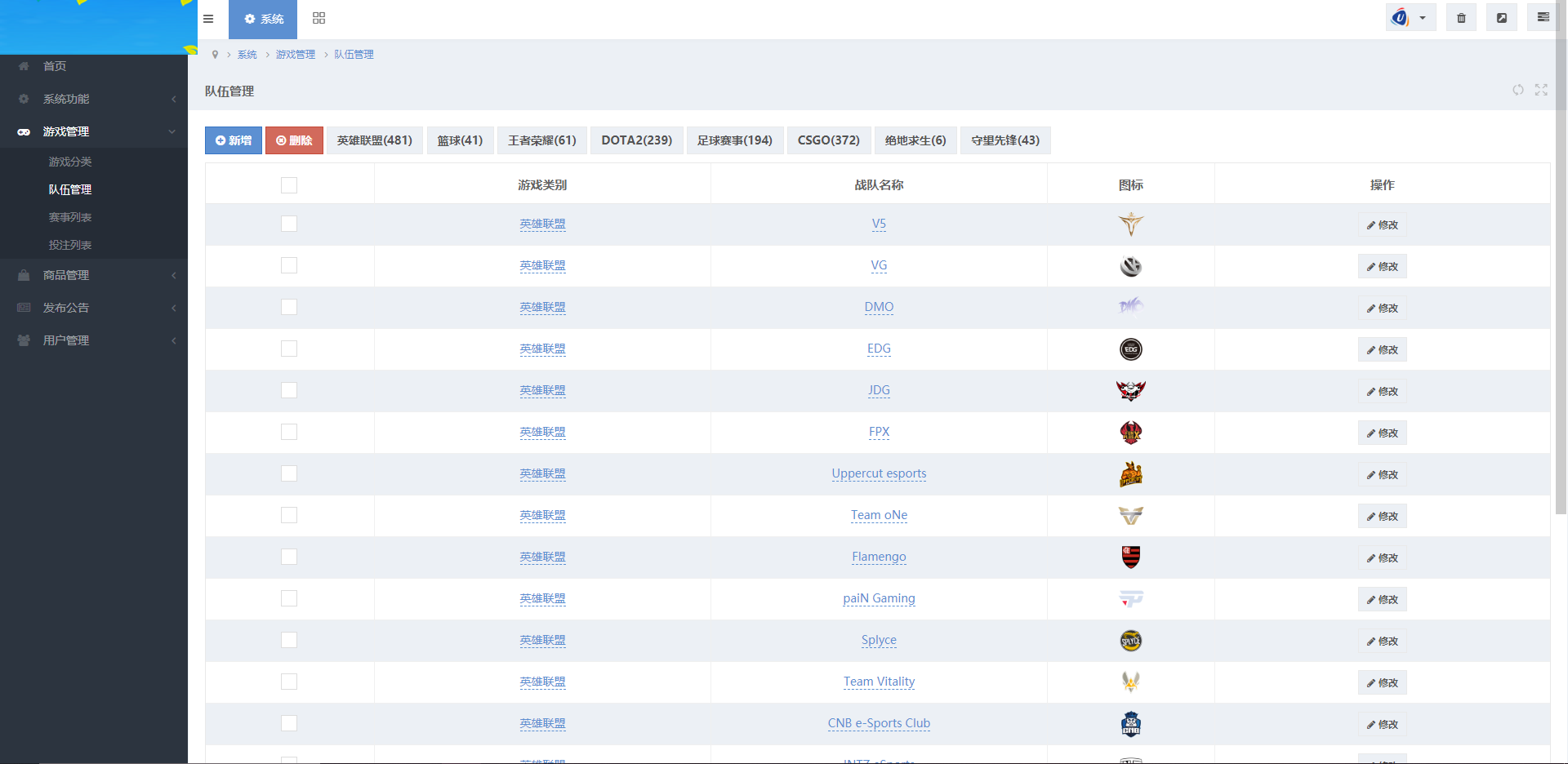 【华人电竞 / 电竞比分源码 / 可封装APP】后台界面实测截图