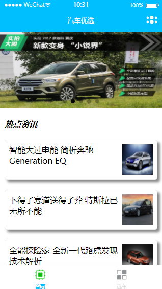 汽车优选小程序模板源码,小程序模板介绍了汽车资讯以及车型大全,方便用户选购。