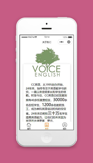 英语培训小程序关于页面源码是使用微信WEB开发者工具开发,亲测可直接运行。该程序包含了详细完整的框架架构结构,从设计上满足了相关应用服务的设计要求,是一款非常值得学习简介的DEMO小程序源码。