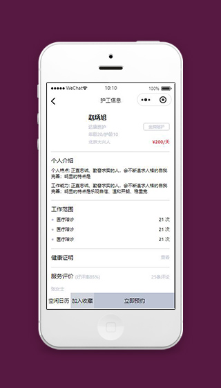 医护小程序护工详情页面模板源码是使用微信WEB开发者工具开发,亲测可直接运行。该程序包含了详细完整的框架架构结构,从设计上满足了相关应用服务的设计要求,是一款非常值得学习简介的DEMO小程序源码。