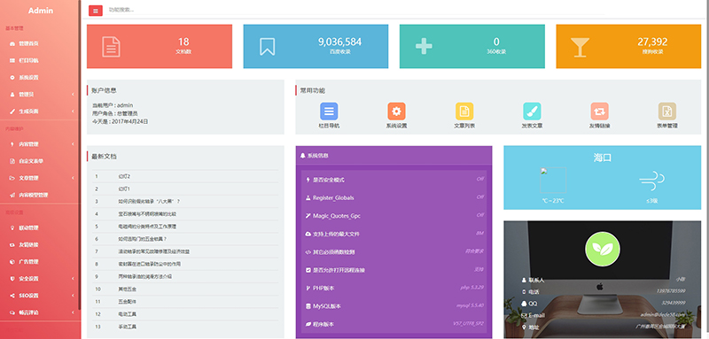 精心改良过的后台,更适合接企业建站单时,给客户使用。简洁明了,容易操作,没有织梦的广告。
