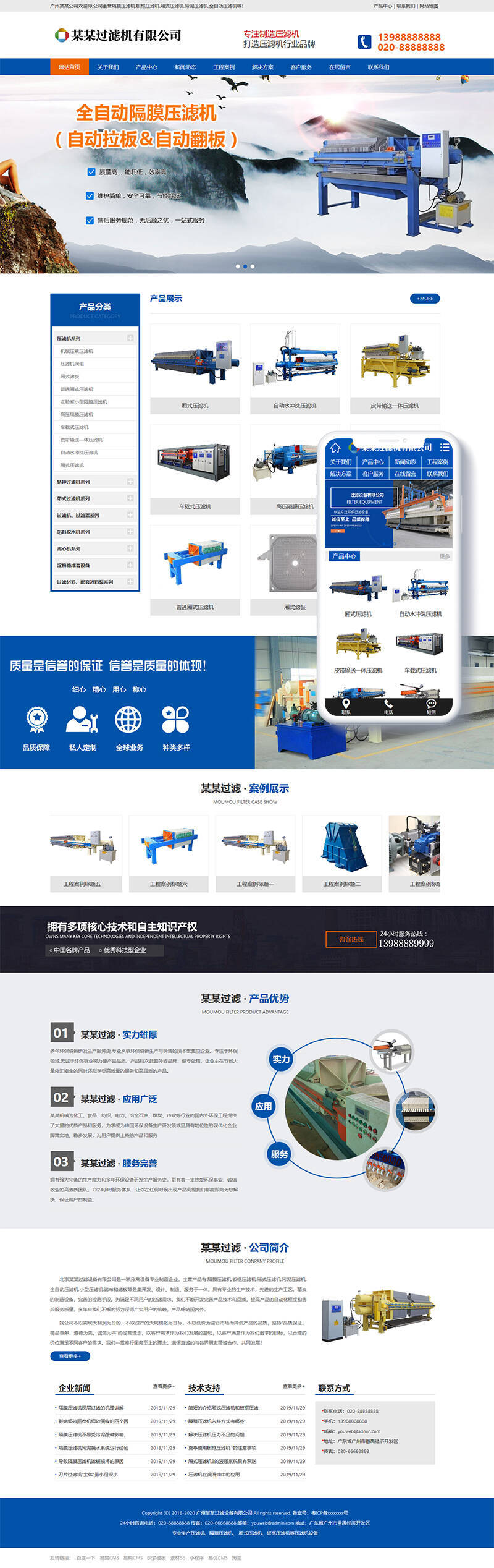织梦最新内核开发的模板,该模板属于企业通用、过滤机、过滤设备类企业使用,