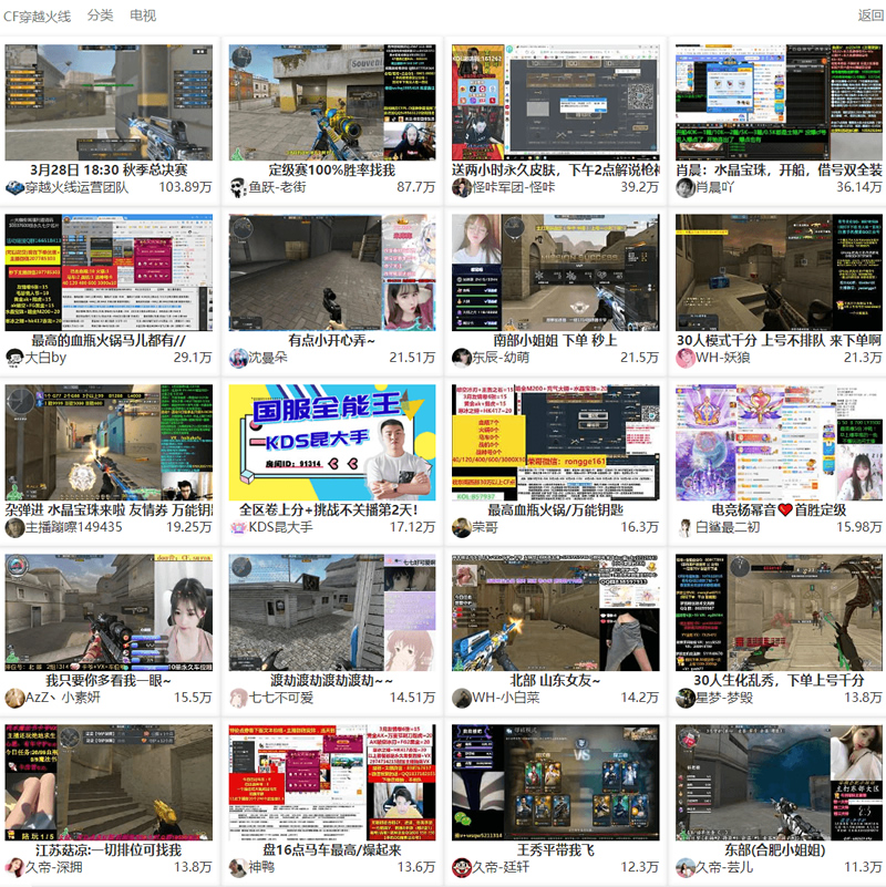 可以将斗鱼、虎牙、触手、YY、龙珠、战旗、章鱼、电视直播按分类或关键词聚合,用户选择分类,可以观看到全网该关键词下正在直播的内容。