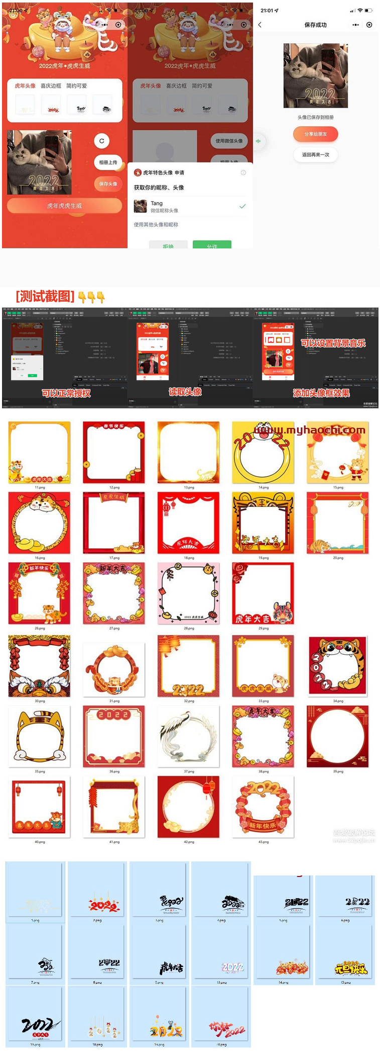 2022全新虎年背景头像框自动生成微信小程序源码 声明:本站所有文章,如无特殊说明或标注,均为本站原创发布。任何个人或组织,在未征得本站同意时,禁止复制、盗用、采集、发布本站内容到任何网站、书籍等各类媒体平台。如若本站内容侵犯了原著者的合法权益,可联系我们进行处理。