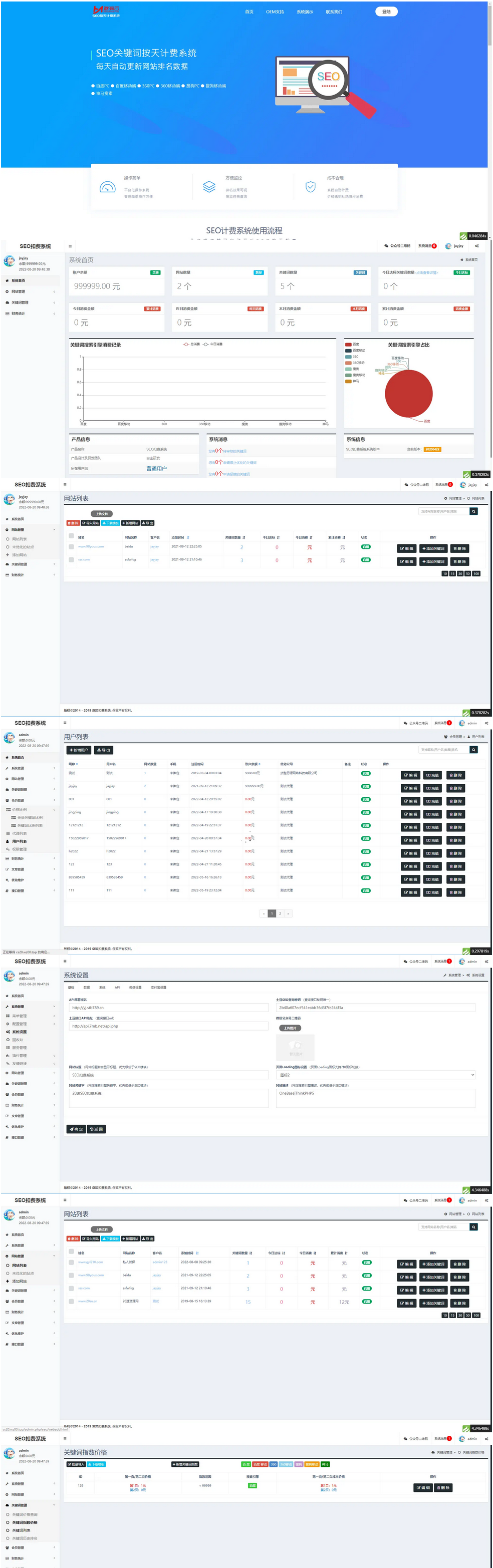 该系统分为三个级别的会员流程:总站管理员、代理与会员(会员有普通会员、中级会员和高级会员三个等级)。总站管理员可以添加代理用户并为其充值余额,代理用户可以为普通用户充值余额。代理用户可以设置关键词查询比例,例如,如果总站向代理用户收费10元,则代理用户可以设置普通用户的查询比例为200%,那么用户添加该关键词的价格将为20元,其中10元是代理用户的利润。代理用户只能看到自己的下级会员,并且设置的比例只对下级会员有效。如果代理用户没有设置比例,则默认按照总站给代理的价格展示给用户。
