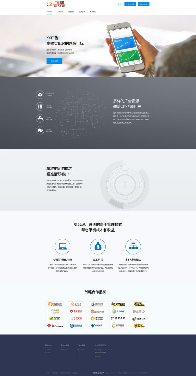 11.模板多样,前台、网站主、广告主、管理主、客服和商务后台都可以自己做模板,包括电脑和移动设备可使用不同模板