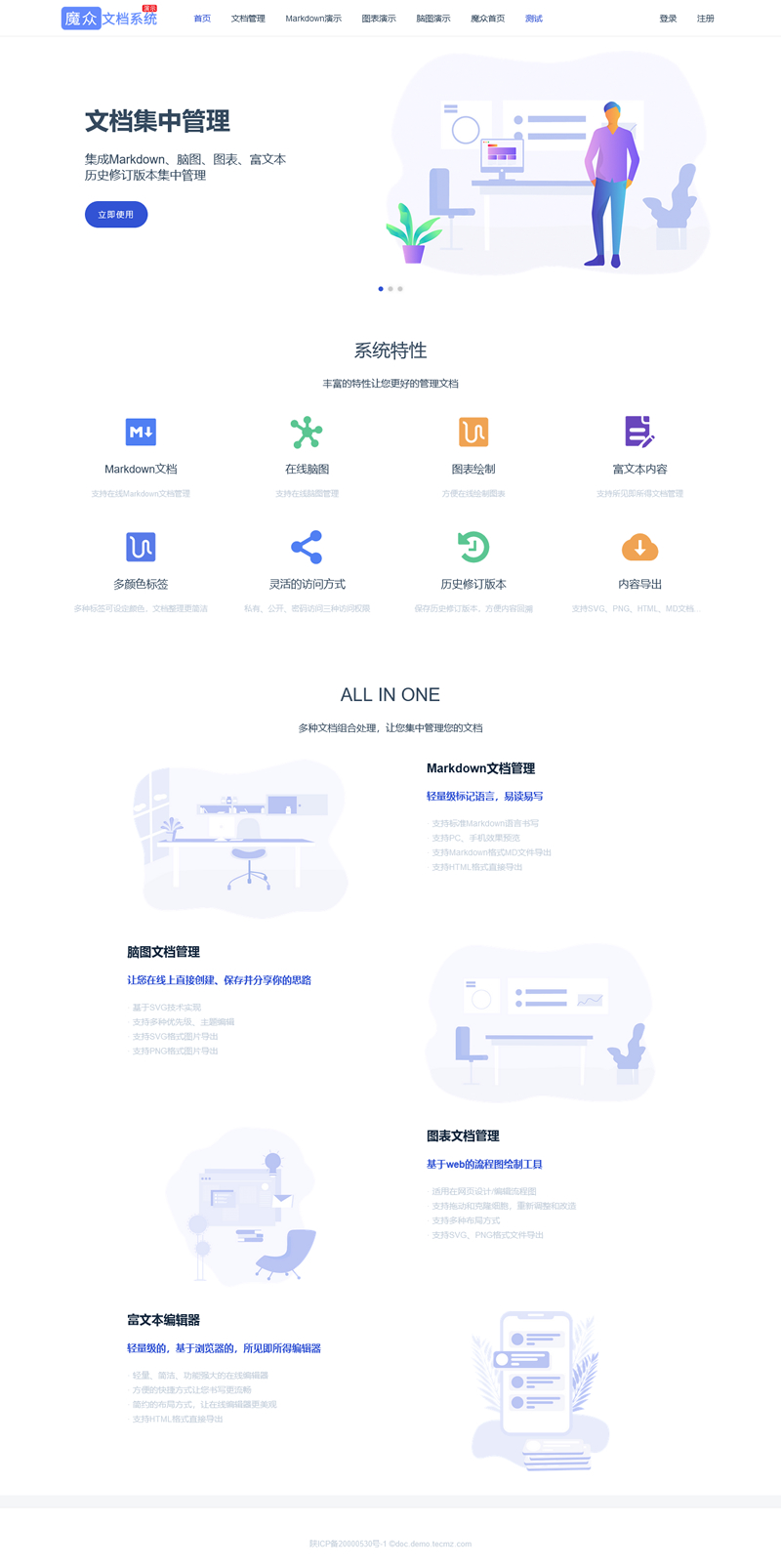 魔众文档管理系统,支持Markdown、图表、脑图、富文本的文档管理系统。