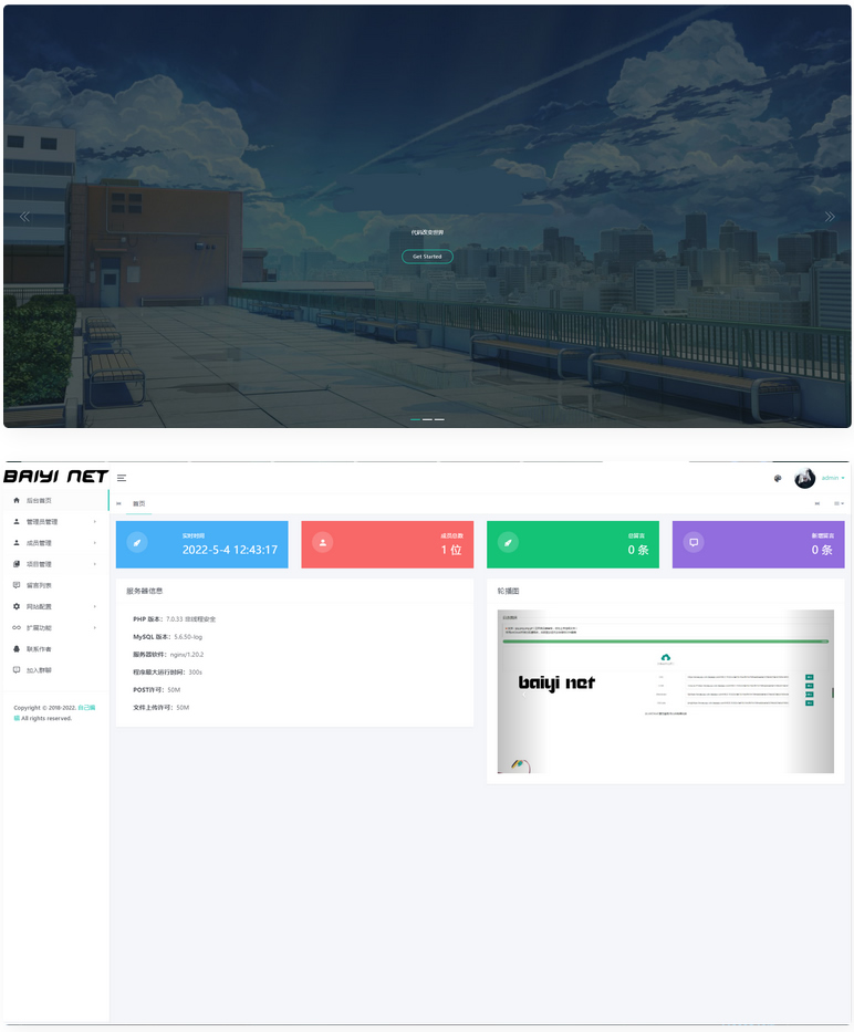 该项目适用于团队/工作室等类型,全站由layui强力驱动,及光年后台模板的使用