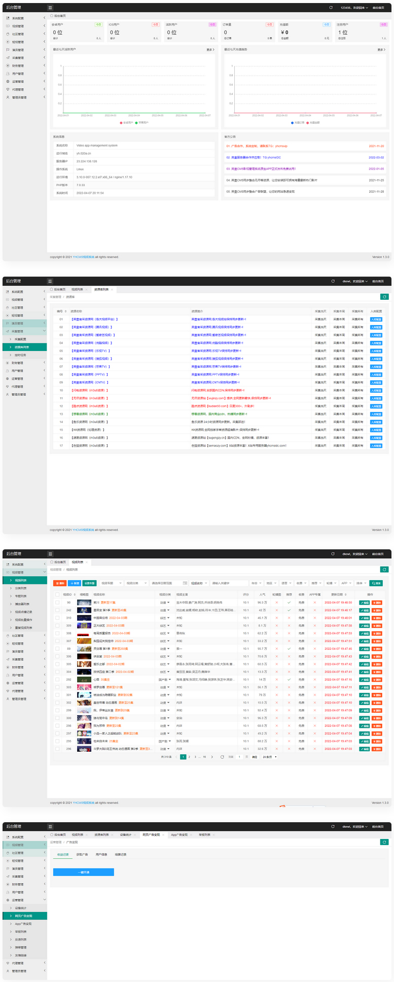 三端:PC+wap+app端,支持视频下载,有直播,开通会员,短视频,论坛社区功能等