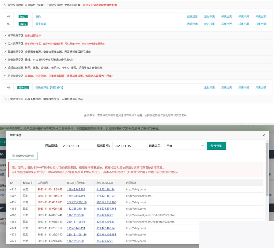 苹果cmsV10蜘蛛统计插件+集合采集插件