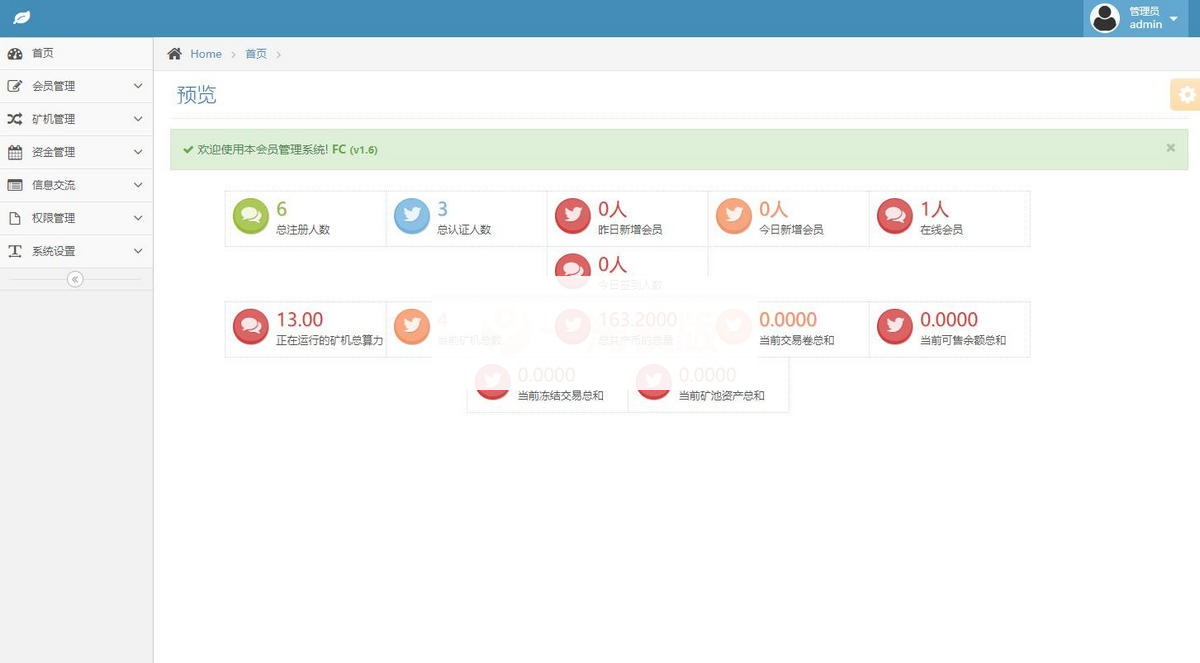 后台矿机管理,订单明细等。