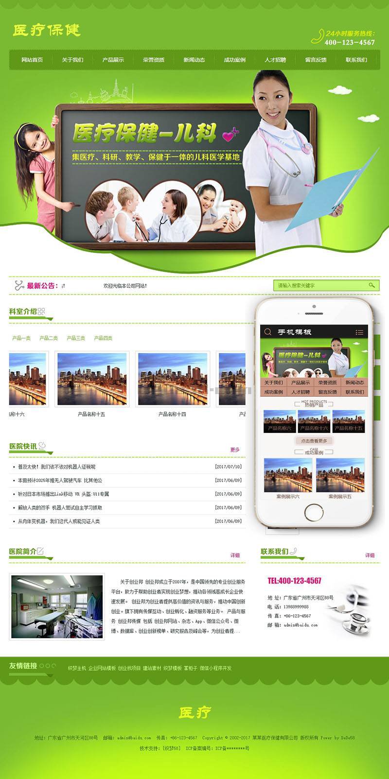 一款绿色风格的织梦dedecms医疗保健儿科医院门诊网站模板(带手机移动端)