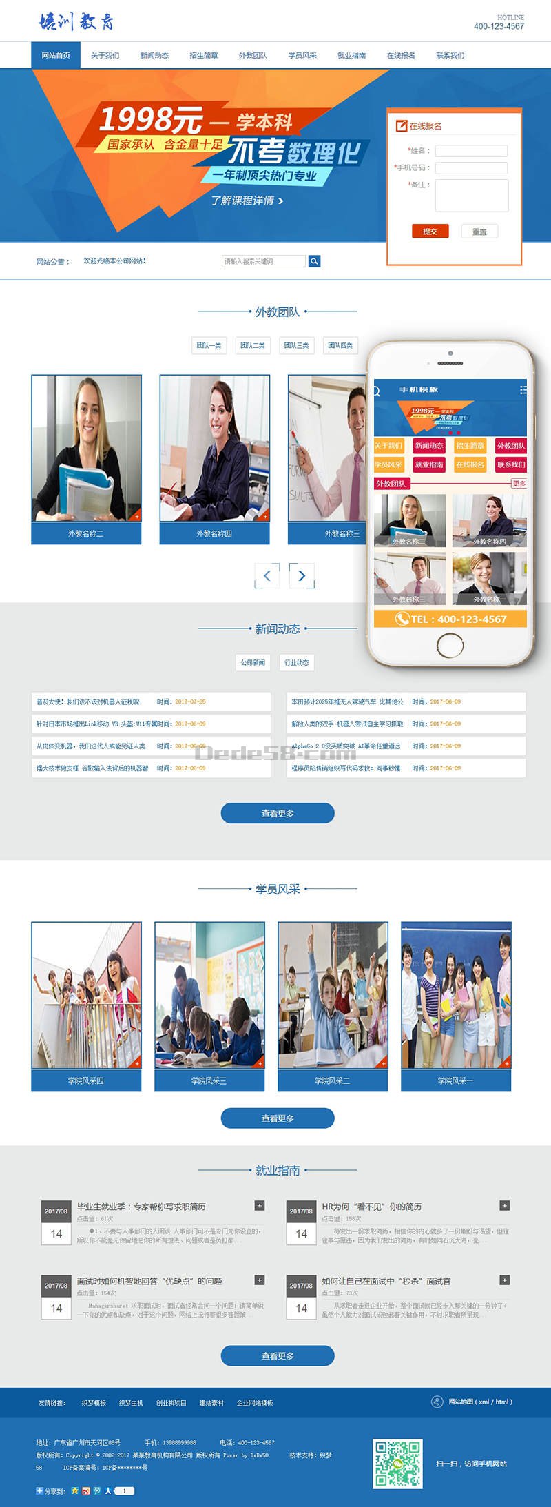 织梦最新内核开发的模板,该模板属于企业通用类、数理化培训、教育机构类企业都可使用,